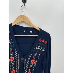 CAITE Embroidered Cardigan Waterfall Bohemian Duster Blue Size M Boho Fairycore