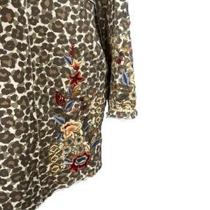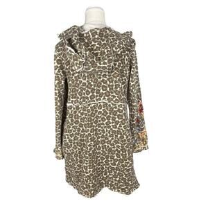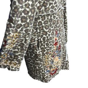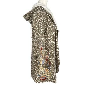 CAITE Small Leopard Camo Print Floral Embroidered French Terry Cardigan Hoodie