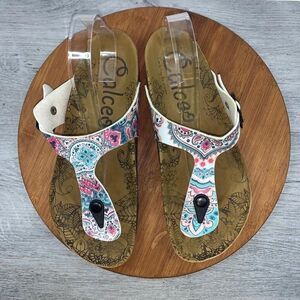 CALCEO Size US 10 EU 41 Multicolor Print Thong Slide Sandals Comfort Birk
