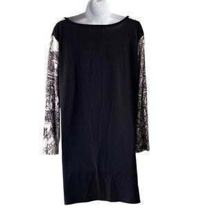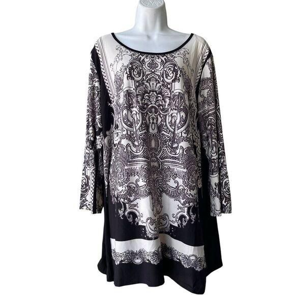 CALESSA Tunic Top Plus Size 2X Black White Prints Long Sleeve Knit Blouse