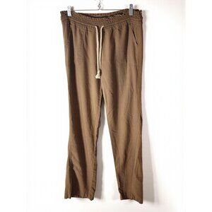 CALI 1850 Linen Blend Drawstring Pants – Brown Wide Leg Lounge M