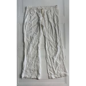 CALI 1850 Linen Blend White Wide Leg Pants Medium Drawstring Elastic Waist