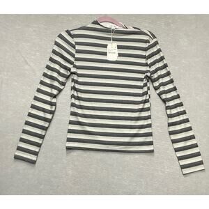CALI BE Black Gray Striped Top Long Sleeve Size L NWT