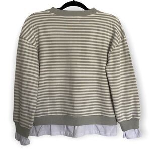 CALI BE Nordstrom Pullover Sweater Green White Stripe Peekaboo Hem SZ XS NWT