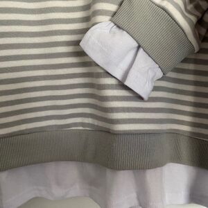 CALI BE Nordstrom Pullover Sweater Gray White Stripe Peekaboo Hem SZ XS NWT