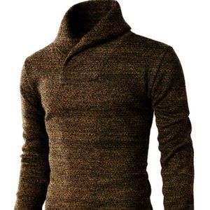 CALI HOLI Muscle Fit Shawl Collar Sweater Brown- Large