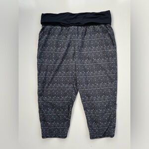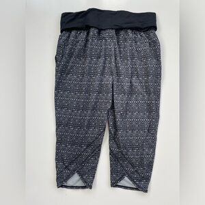 Black White Effortless Anywhere Foldover Waist Capri Gray Geometric Capri length Joggers, Size Large