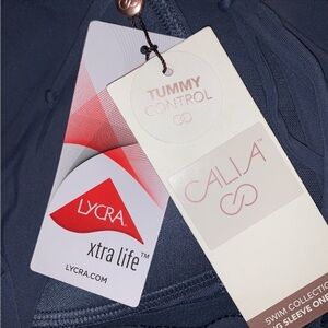 CALIA Carrie Underwood Blue/White Floral Print Long Sleeve Modest Swimsuit Sz 12