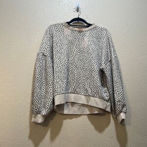CALIA Confetti Dot Birch sweatshirt. Size women's medium. Oversized, cropped fit is perfect for throwing on after a workout (interior is smooth and not fuzzy). Billowy balloon sleeves add a cute touch. In excellent used condition.