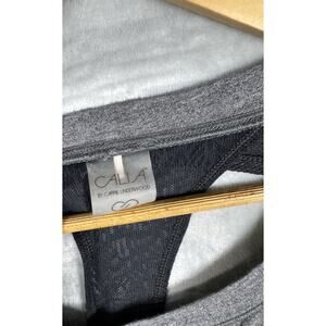 CALIA Heather Grey Mesh Lace. Racerback Long Sleeve Open Back Shirt size Small