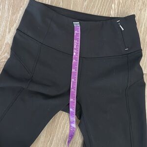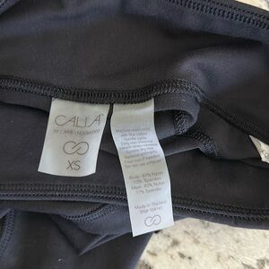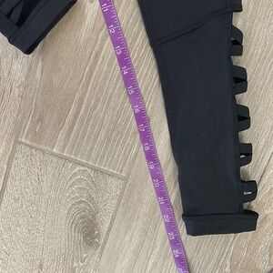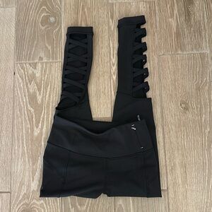 Stylish black leggings featuring unique side cutouts. Perfect for casual wear or workouts.