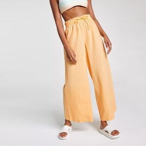 CALIA Linen Blend High Waisted Wide Leg Cover Up Swim Pant Sunrise Orange Size L