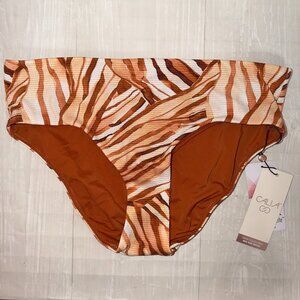 CALIA NWT Brown Zebra Print Mid Rise Bikini Bottoms Size Small Swimwear
