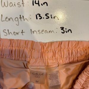 Good pre-owned condition with no stains or tears noted. Mild wear noted throughout. Style features a side pocket on the shorts. Fits true to size. See photos for approximate measurements.