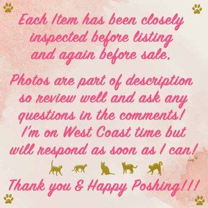 • Photos are part of the description – please review well and ask if you’d like additional measurements or photos with different lighting or angles.