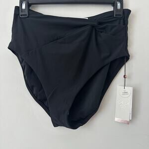 CALIA Women's High Waisted Side Twist Swim Bottoms, Small, Pure Black NWT