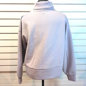Calia Women’s Soft Scuba Funnel Neck Sweatshirt Color: Metal Lily (lilac, lavender) Size: Large - Very soft and comfy! - Like new condition - Great quality - Relaxed fit - 51% polyester, 4% spandex (has some stretch) Measurements: length: 23.5" sleeve: 21' pit to pit: 24"