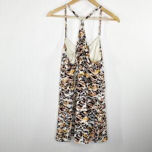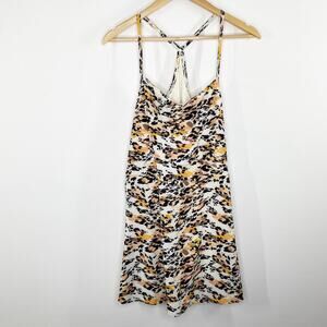Performance new animal unbleached mini dress. Sleeveless, adjustable straps, zippered pocket.