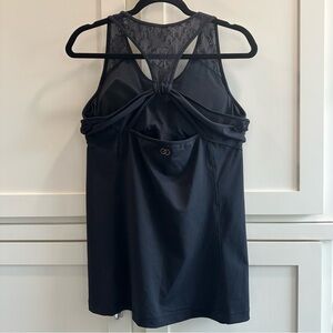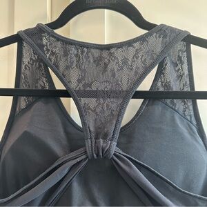 CALIA by Carrie Underwood black lace tank top with built in sports bra. Removable pads.