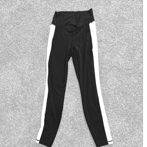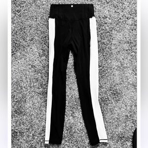 Sleek black leggings featuring striking white side panels. Perfect for workouts.