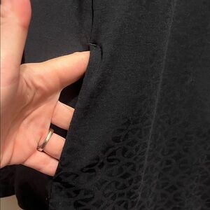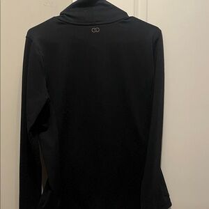black sweatshirt. Long sleeves. Runs like a large, in my opinion.