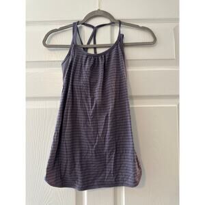 CALIA by Carrie Underwood double layered striped tank top in purple. Features a built in sports bra, strappy back, and soft cotton material. Size XS in Women's. Perfect for yoga, spin class, or everyday activewear for your workout! Excellent used condition.