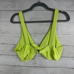 Vibrant neon bikini top. Features a stylish front tie. Perfect for a bold beach look.