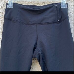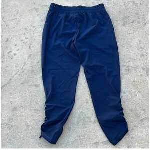 CALIA by Carrie Underwood Set of Workout Pants/Leggings. Blue ruched leg jogger pants with drawstring waist and two front pockets. Black tihht fit capri leggings with front zipper pocket.