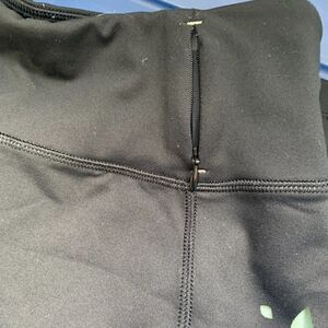 Wide waistband provides coverage and comfort, Invisible zip pocket secures small essentials. Material is 88% nylon, 12% spandex