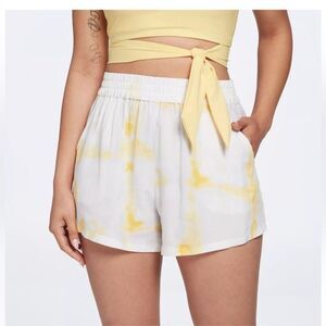 CALIA NWOT Women's High Rise Cover Up Short white yellow pockets size M