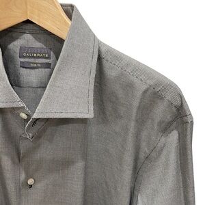 CALIBRATE Men’s Mini Black White Check Dress Shirt No Iron Trim Fit SZ 17.5
