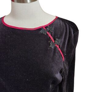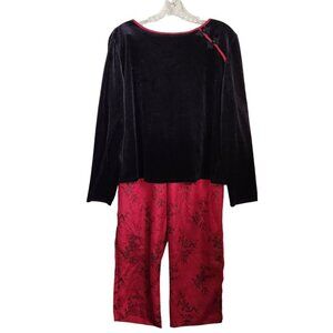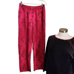 CALIFORNIA DYNASTY WOMAN'S Chinese SATIN 2 PC PJ PAJAMAS LOUNGE SET SZ M Velvet
