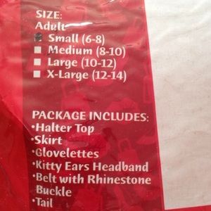 CALIFORNIA SEXY LEOPARD KITTY DELISH COSTUME, INCLUDES SKIRT, HALTER TOP, TAIL, GLOVES BELT AND EARS, S NWT ONE AVAILABLE