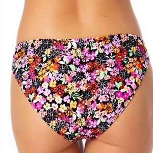 A sweet floral ditsy print lends a retro feel to California Waves' plus size bikini bottoms, while ruched side tabs add a touch of texture.