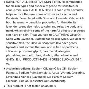 - Olive oil Soap with Lavender helps reduce the symptom of Rosacea, Eczema and Psoriasis