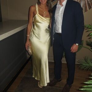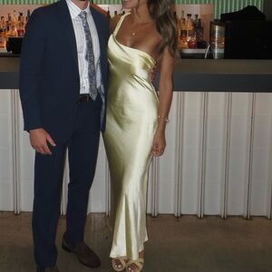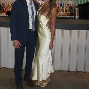 Make a stunning entrance in this luxurious satin slip dress. Features a flattering cowl neckline, sleek silhouette, and body-skimming fit that exudes sophistication. The lustrous satin fabric creates an ethereal glow perfect for special occasions.