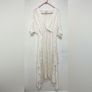 Beautiful dress in great condition. This dress is soft and beautiful. The dress has 2 very small spots on the front that are not very visible. I have not tried treating them but oxyclean always does the trick.