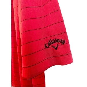 CALLAWAY OPTI-DRI MENS GOLF POLO SHIRT. RED WITH THIN BLACK STRIPE. CALLAWAY EMBROIDERED SLEEVE. SIZE M