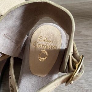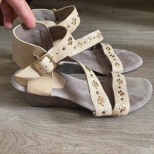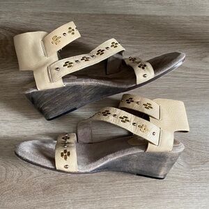 Ivory color, studded, leather Wedge Sandal, Ankle strap with buckle