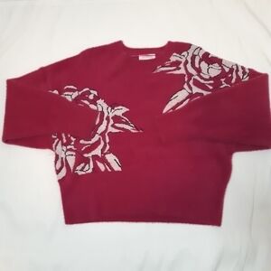 Calligraphie dark pink sweater, long sleeve, round neckline, soft feel