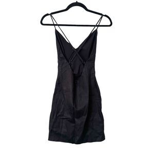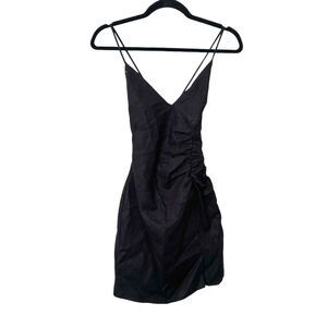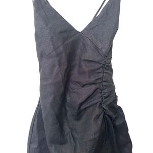 CALLIPYGIAN Linen Cinched Side Slit Mini Dress Black Sz0