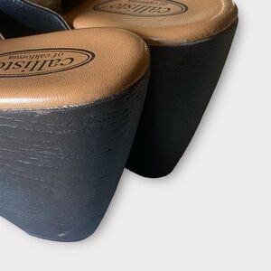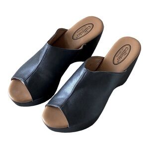 CALLISTO Black Leather Wooden Wedge Mules Clogs Open Toe Gothic Size 9 Gothic