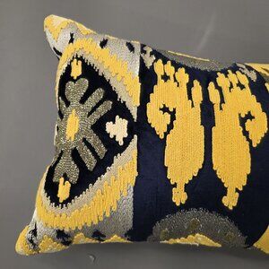 CALLISTO HOME COASTAL MODERN IKAT METALLIC VELVET PILLOW FEATHER DOWN 22X12