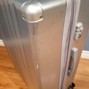 CALPAK AMBEUR 2-PIECE LUGGAGE SET - SILVER. Condition is New + Used. The large piece was used once and has signs of wear. The smaller piece has never been used.
