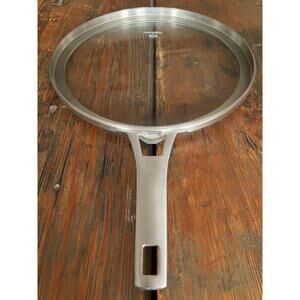 CALPHALON Premier Space-Saving Stainless Steel Glass Lid w/Long Handle. Featuring a glass top w/brushed stainless steel finish, long handle, heavy duty and a flat top for easy stacking.