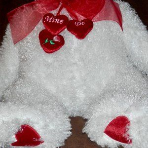 CALTOY WHITE BEAR WITH RED BOW AND NOSE * BLACK EYES * WITH BE MINE HEARTS * 20 IN LONG * CUTE * FROM MY SMOKE FREE HOME * THANK YOU FOR BROWSING MY CLOSET * BOX #24