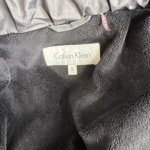 CALVIN KLEIN 1X Gray Winter Coat with attached hood. Has zipper front pockets and 2 inside pockets. Excellent t condition.