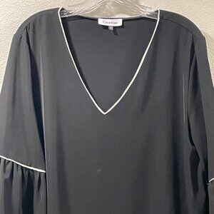 CALVIN KLEIN 3/4 Ruffle Bell Sleeve Oversize Blouse, Black - XL