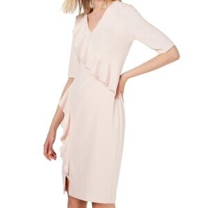CALVIN KLEIN Asymmetrical V-Neck Ruffle Sheath Dress Lined Blossom Pink Size 6
