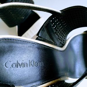Calvin Klein Breannie (Soft white/Black Leather) Sandals.